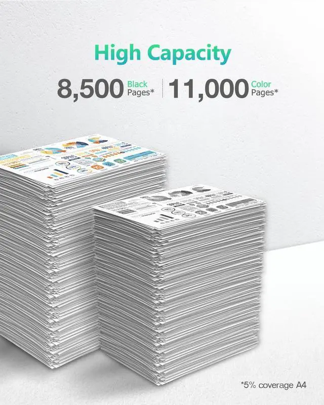 • Page Yield: Approximately 8500 pages per black toner, 11,000 pages per color toner at 5% coverage of A4/letter.