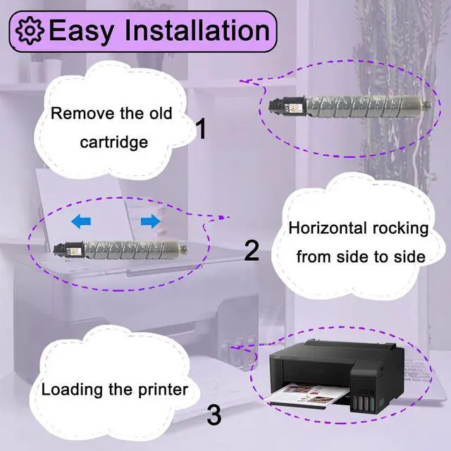 Easy Installation:MP C4500A 888604 888607 888605 888606 toner cartridge the installation process was a breeze pull out the old one and replace it with a new one reduces the frequency of cartridge replacements