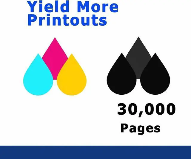 Ultra High Page Yield: Cartridges Black prints up to 2,000 pages, and each color (C/M/Y) up to 5,300 pages at 5% coverage. Produces vibrant, accurate colors while reducing cartridge changes and boosting office efficiency