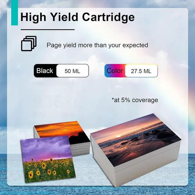 High Page Yield: 936XL Ink Cartridge with its higher ink capacity; Black ink cartridge up to 50 ML; Color ink cartridge up to 27.5 ML (A4 paper 5% coverage)