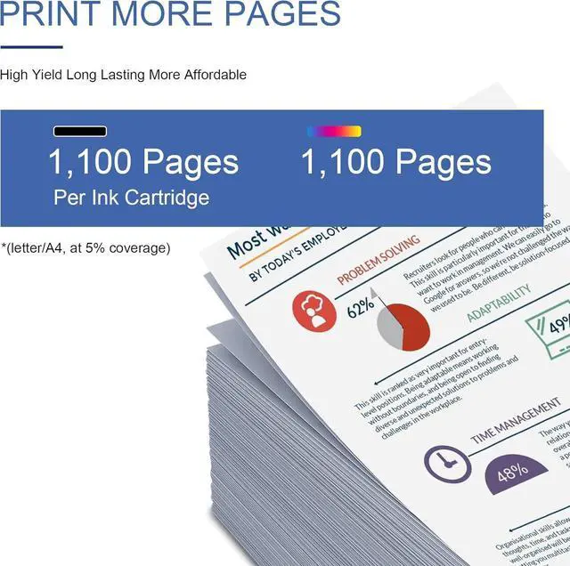 Page Yield: 1,100 Pages per Black 812XL Ink Cartridge, 1,100 Pages per Color 812XL Ink Cartidge (at 5% coverage Letter A4)