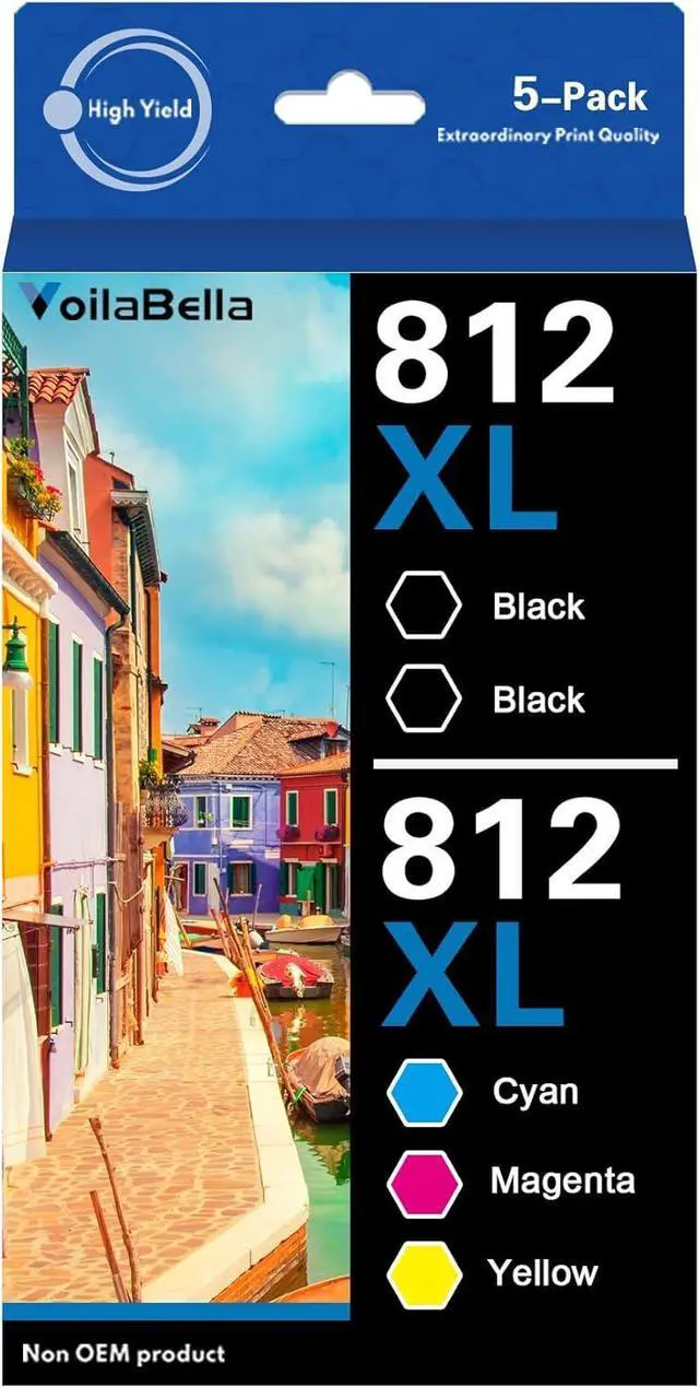 Package Content: 5 Pack 812XL Ink Cartridge( 2 Black, 1 Cyan, 1 Magenta, 1 Yellow)