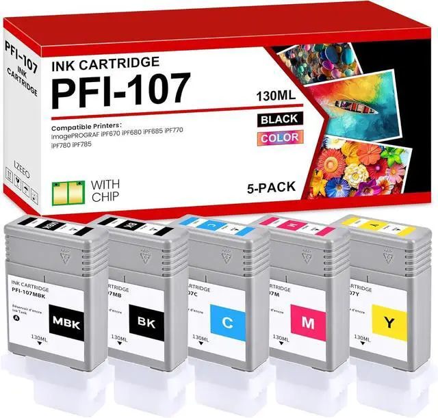 Products in the package: 5 Pack PFI-107 Ink Cartridge,1x PFI-107MBK Matte Black Ink Cartridge,1x PFI-107BK Black Ink Cartridge,1x PFI-107C Cyan Ink Cartridge,1x PFI-107Y Yellow Ink Cartridge,1x PFI-107M Magenta Ink Cartridge