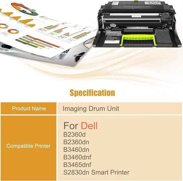 Imaging Drum Unit Compatible with Dell B2360d B2360dn B3460dn B3460dnf B3465dnf S2830dn Smart Printer Printer, KVK63 90DC4 331-9811 331-9810 Drum Cartridges High Yield 61000 Pages (1 Pack Black)