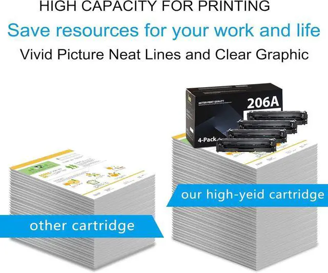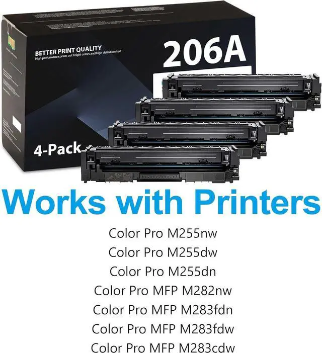 With Chip: Replacement for hp 206a toner cartridges 4 pack set equipped with the latest upgraded chip technology, our toner cartridges are easily recognized by your printer for exceptional compatibility and exceptional results