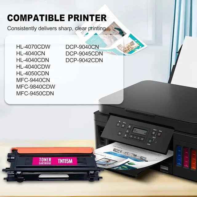 Page Yield: Up to 5,500 pages per TN115M Magenta Toner cartridge (based on 5% coverage of Letter size Paper).