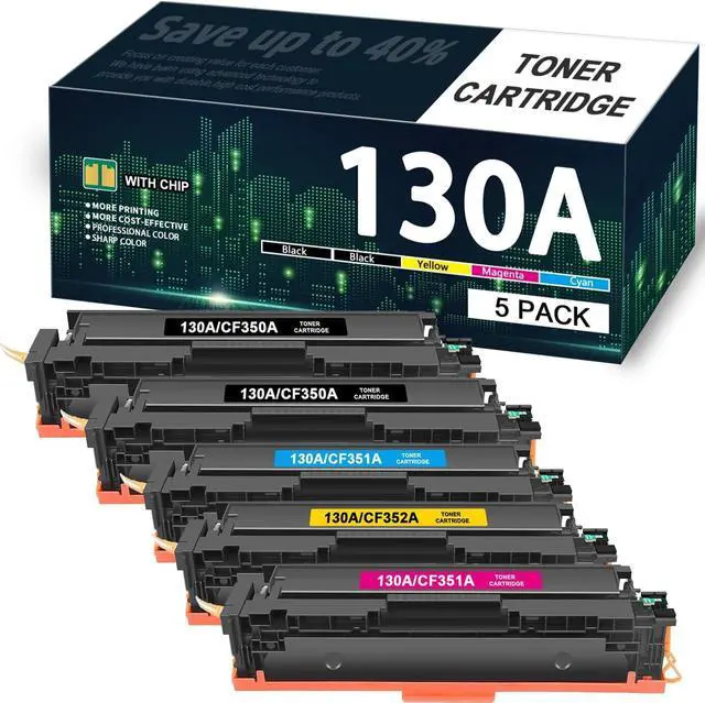 What's in the box: 5 pack for 130A toner cartridges (2 Black CF350A,1 Cyan CF351A,1 Yellow CF352A, 1 Magenta CF353A)