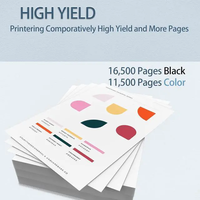 HIGH PAGE YIELDEnjoy long-lasting performance with 16,500 pages for the black toner and 11,500 pages for each color (cyan, magenta, yellow), making it ideal for high-volume printing
