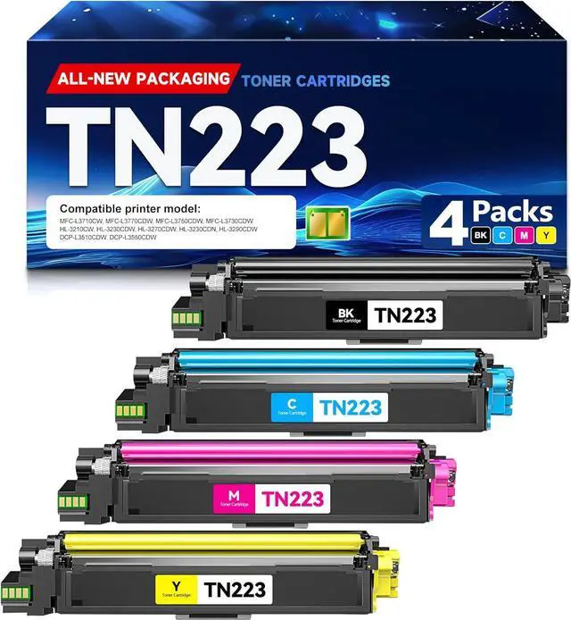TN223 TN223 BK/C/M/Y toner cartridge 4 pack: compatible with Brother MFC-L3710CW, MFC-L3770CDW, MFC-L3750CDW, MFC-L3730CDW, HL-3210CW, HL-3230CDW, HL-3270CDW, HL-3230CDN, HL-3290CDW, DCP-L3510CDW, DCP-L3550CDW Laser Printer