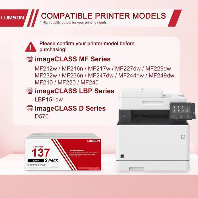 Compatible Printer Models: 137 Toner Cartridges 2 Pack Replacement for Canon ImageCLASS MF212w MF216n MF217w MF227dw MF229dw MF232w MF236n MF247dw MF244dw MF249dw MF210 MF220 MF240 ImageCLASS LBP151dw ImageCLASS D570 Printer