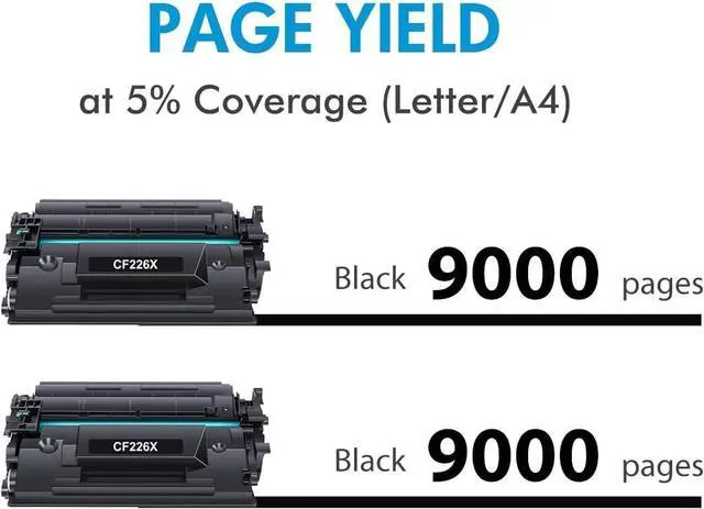 Page Yield: 9,000 pages at 5% coverage (Letter/A4) for CF226X 26X toner cartridge