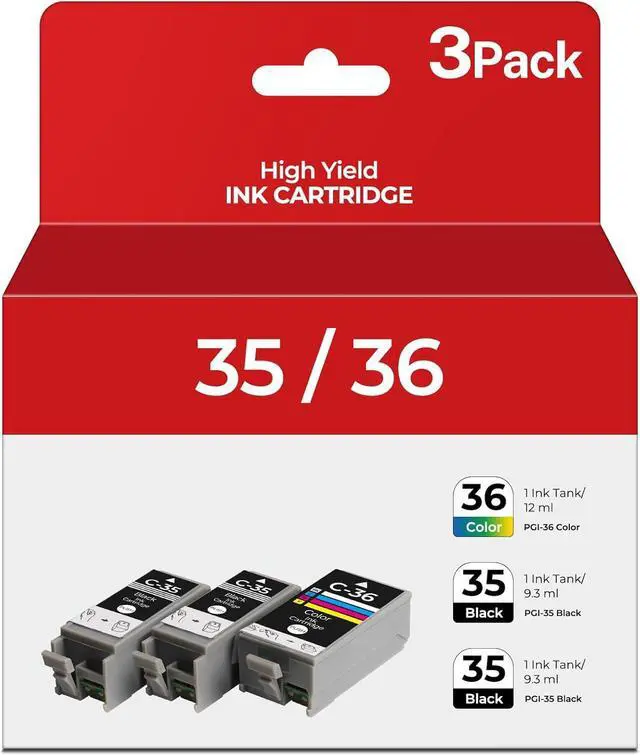 Package Content: PGI-35 CLI-36 ink cartridges black color combo pack replacement for Canon PGI-35 CLI-36 ink cartridges, includes 6 pack PGI-35 black and 3 Pack CLI-36 tri-color ink cartridges