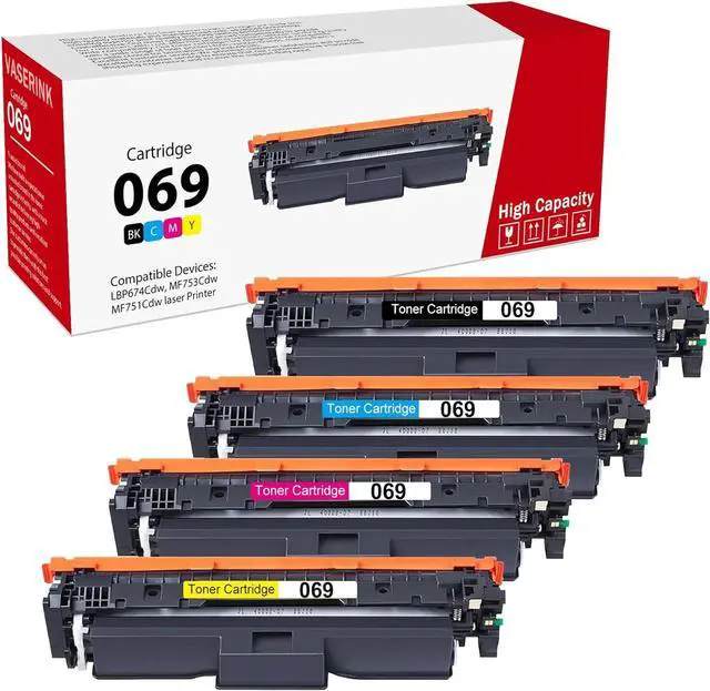 Package Includes: 4-Pack 069 Toner Cartridge (Black, Cyan, Yellow, Magenta).