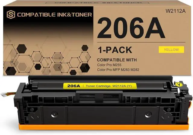 What's in the box: 1-pack 206A Yellow toner cartridges with chip (1 x 206A W2110A Yellow toner) compatible with HP MFP M283fdw M255dw toner.