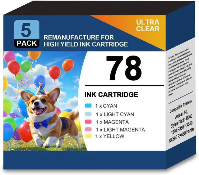 Package Content: 5 Pack 78 Ink Cartridges.1Cyan,1Light Cyan,1Magenta,1Light Magenta,1Yellow