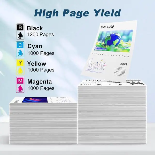 High Page Yield:Each 910XL black ink cartridge prints up to 1,200 pages, while each 910XL color cartridge (cyan, magenta, yellow) prints up to 1,000 pages, based on 5% coverage on A4/Letter paper. Enjoy long-lasting printing without frequent replacements.