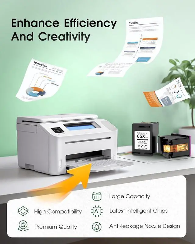 High Quality: All 65xl ink for hp65 are equipped with the latest upgraded chips to ensure perfect compatibility with printers and excellent print quality.