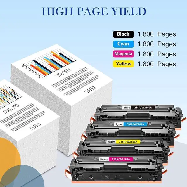 High Page Yield: Up to 1,800 pages per 218A Black toner cartridge and 1,800 page per 218A Cyan Yellow Magenta toner cartridge (5% coverage of A4 paper)