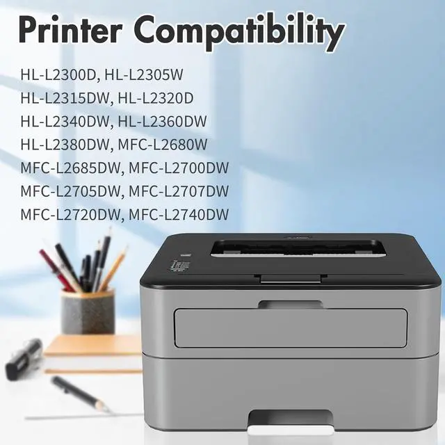 This Toner cartridge works with: HL-L2300D HL-L2305W HL-L2315DW HL-L2320D HL-L2340DW HL-L2360DW HL-L2380DW MFC-L2680W MFC-L2685DW MFC-L2700DW MFC-L2705DW MFC-L2707DW MFC-L2720DW MFC-L2740DW DCP-L2520DW DCP-L2540DW Printer.