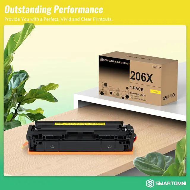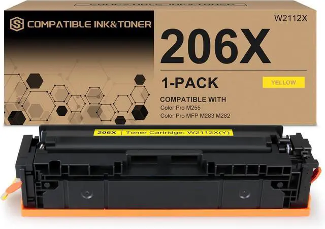 What's in the box: 1-pack 206X Yellow toner cartridges with chip (1 x 206X W2110X Yellow toner) compatible with HP MFP M283fdw M255dw toner.