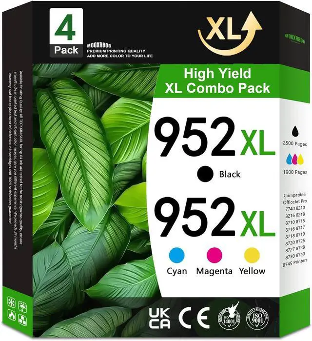 Package Contents: Includes 952XL Ink Cartridges (1Black + 1Cyan + 1Magenta + 1Yellow), Providing All Essential Colors for Seamless Office and Home Printing Needs