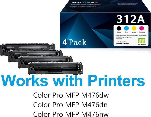 Item Contain: Package Contents: 1 x Black 312A, 1 x Cyan 312A, 1 x Magenta 312A, 1 x Yellow 312A (4 cartridges in total)
