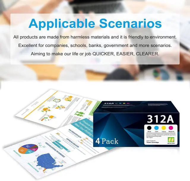 With Chip: Our 312A toner cartridge is installed with chip. No need to transfer 312A toner chip to it