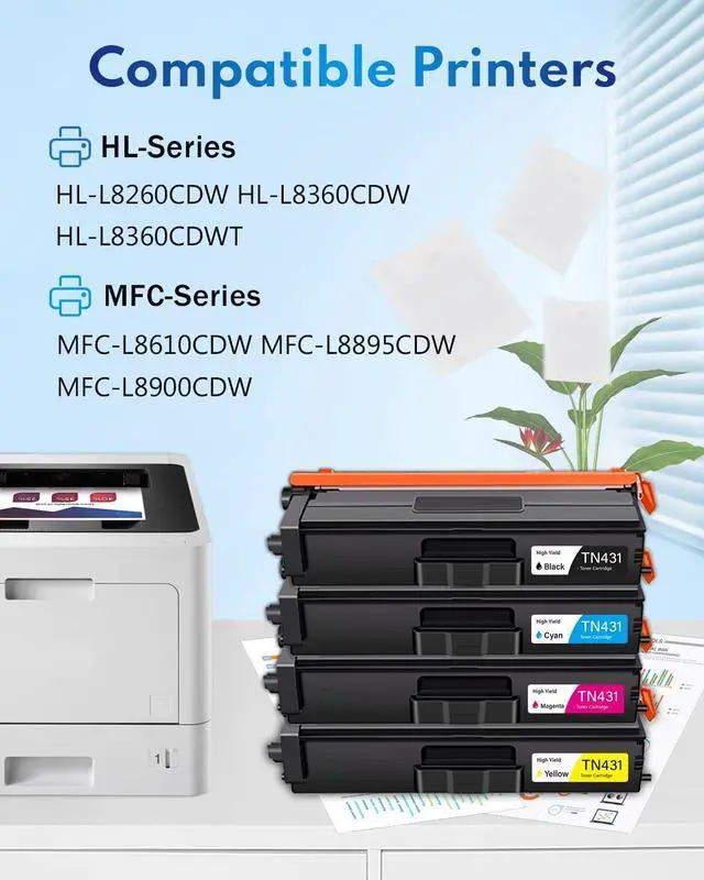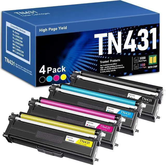 Package included: 1 Black TN431 Toner, 1 Cyan TN431 Toner, 1 Magenta TN431 Toner, 1 Yellow TN431 Toner