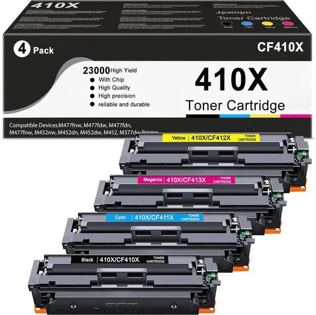 Package Includes: 4-Pack Compatible Toner Cartridge Replacement for 410X CF410X Toner (Black, Cyan, Yellow, Magenta).