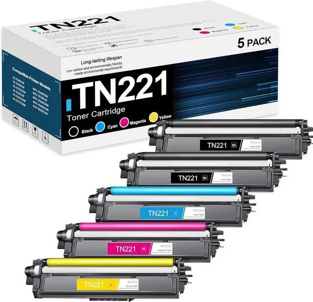 Sealed packaging: TN221 TN 225 High Yield Toner Cartridge 5-Pack, TN221BK TN221C TN221M TN221Y Toner Cartridges(2 Black/1 Cyan/1 Magenta/1 Yellow)