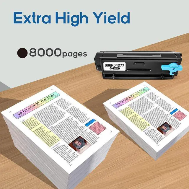 2. High Page Yield: High Yield 8000 pages per for Xerox 006R04377 Black toner cartridge at 5% coverage of A4 Paper. (depends on printer and usage)