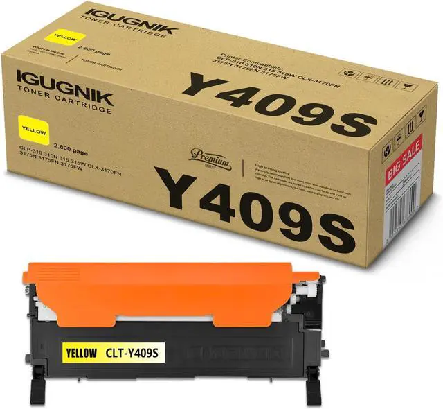 Replacement for Samsung Included: 1 Pack High Yield CLT-Y409S Yellow Toner cartridge