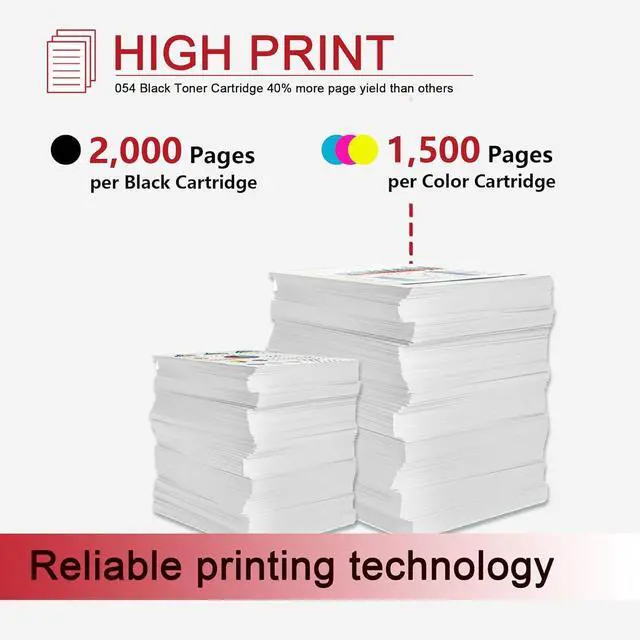 Package Contents: 4 Cartridges 054 Toner Cartridges (1 x Black, 1 x Cyan, 1 x Magenta, 1 x Yellow) - Can be used for high volume printing