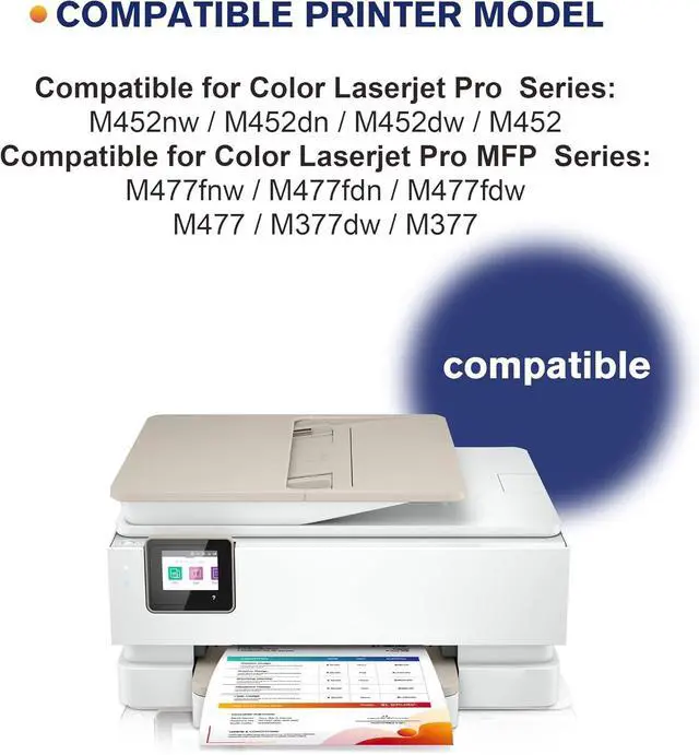Compatible Printers: for HP Color Pro MFP M477fnw, for HP Color Pro MFP M477fdw M477fdn, for HP Color Pro M452nw M452dn M452dw M477 M452 477fnw 477fdn 477fdw M377dw, for HP Pro M477fnw Printer