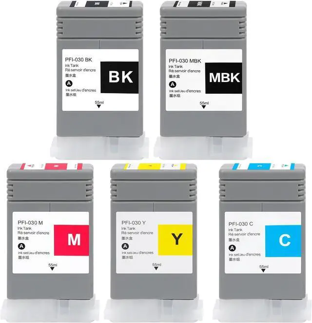Package Contents: 5 Pack PFI-030 PFI 030 Ink Cartridge (Matte Black / Black / Cyan / Magenta / Yellow)
