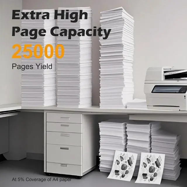 High Page Yield: Up to 25000 pages yield per cartridge ( Letter/A4, at 5% coverage ).