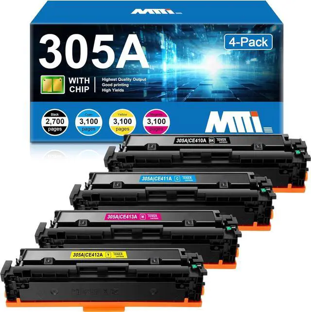 Included: 4 Pack 305A | CE410A CE411A CE412A CE413A Toner Cartridges ( 1Black+1Cyan+1Magenta+1Yellow ) - With Chip