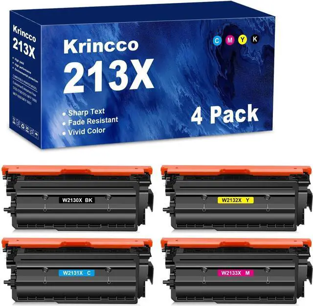 Package Contents: 1 Black 1 Cyan 1 Yellow 1 Magenta 213X toner cartridges.