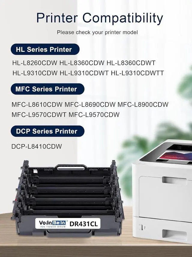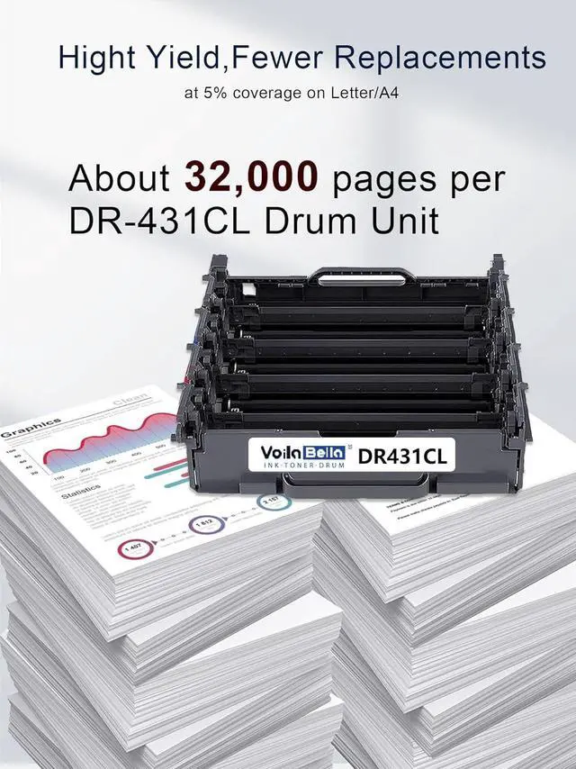Easy to Install:Engineered for seamless compatibility, our DR-431CL drum unit matches OEM dimensions preciselyswap it in just 5 minutes and enjoy instant, professional-grade performance.