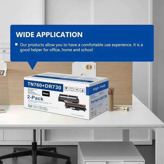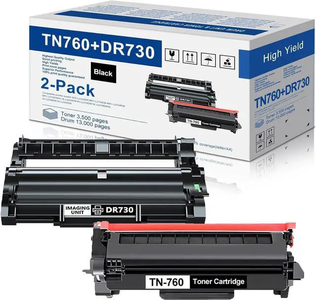 Package Contents: Total 2 PACK, 1 x TN760 Toner Cartridge and 1 x DR730 Drum Unit (Black)