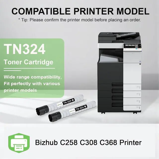 Compatible Printers for TN324 Toner Cartridge: Bizhub C258 C308 C368 Printer