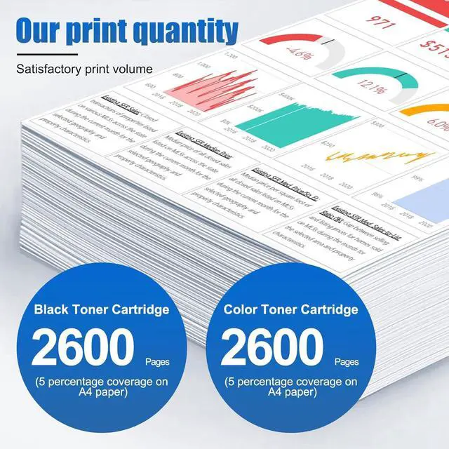Page yield: 410A black toner cartridge - approx 2600 pages and 410A Color toner cartridge - approx 2600 pages at 5% coverage