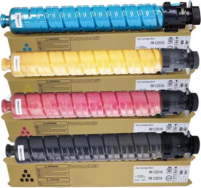 Package Contents:1 Pack im c2510 im c2010 Black toner cartridge,1 Pack im c2510 im c2010 Cyan toner cartridge,1 Pack im c2510 im c2010 Yellow toner cartridge,1 Pack im c2510 im c2010 Magenta toner cartridge