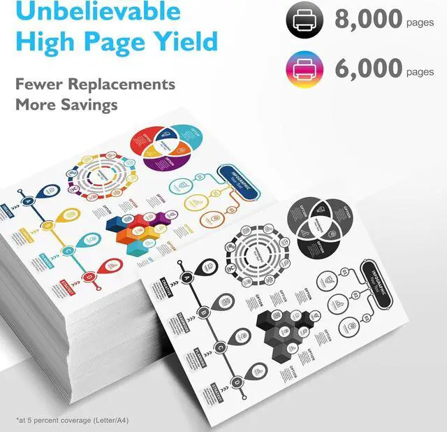 Page Yield: 8,000 pages per 6600 Black Toner Cartridge and 6,000 pages per color toner cartridge based on 5% coverage (Letter/A4).