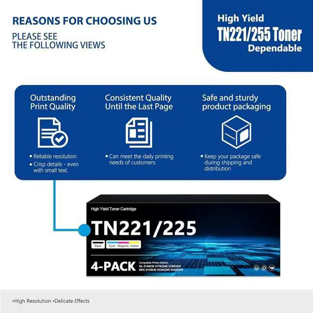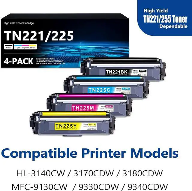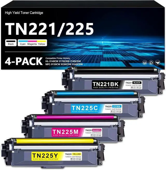 What's in the box: new TN221 Black & TN225 Color Toner Cartridge 4-Pack (1 Black, 1 Cyan, 1 Magenta, 1 Yellow)