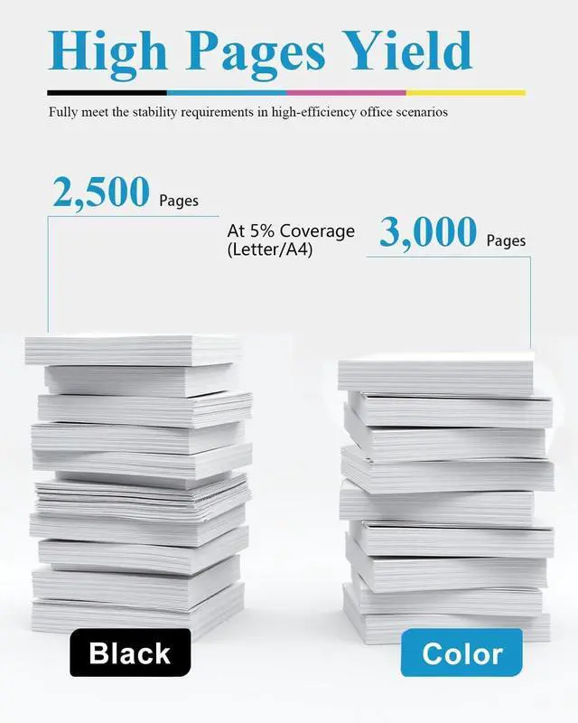 305A toner Print yield: Each black 305A toner cartridge yields approximately 2,500 pages, Each color 305A toner cartridge yields approximately 3,000 pages(letters /A4, 5% coverage)
