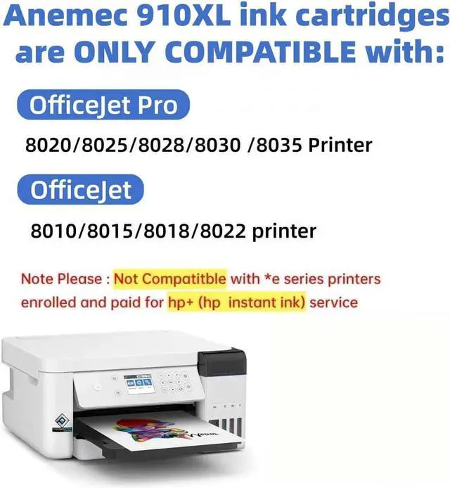 Compatible *E Series Printers: Compatible with HP OfficeJet 8015e 8022e 8010e 8012e 8014e and OfficeJet Pro 8025e 8028e 8035e 8020e 8024e Printers