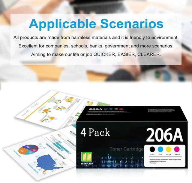 High Page Yield: Up to 1,850 pages for 206a black toner cartridge and 1,750 pages for 206a toner color cartridge ( Letter/A4, at 3% Coverage)