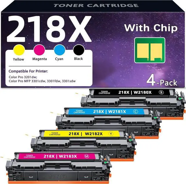 Package Contents: Replacement for hp 218x toner cartridges 4 pack with chip, include 1 x 218X W2180X black toner, 1 x 218X W2181X cyan toner, 1 x 218X W2182X yellow toner, 1 x 218X W2183X magenta toner (Total 4 Pack)