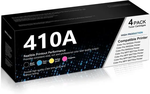 Full-color printing Bundle: Includes 4 Pack 410A toner cartridges (1 x CF410A Black, 1 x CF411A Cyan, 1 x CF412A Yellow, 1 x CF413A Magenta)